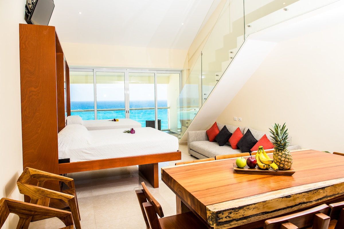 The spaceOur oceanfront Penthouse in Cancun is the Best of Both Worlds featuring gorgeous views of the ocean, access to the beach from the lobby and a 1 minute walk to the heart of the hotel zone!